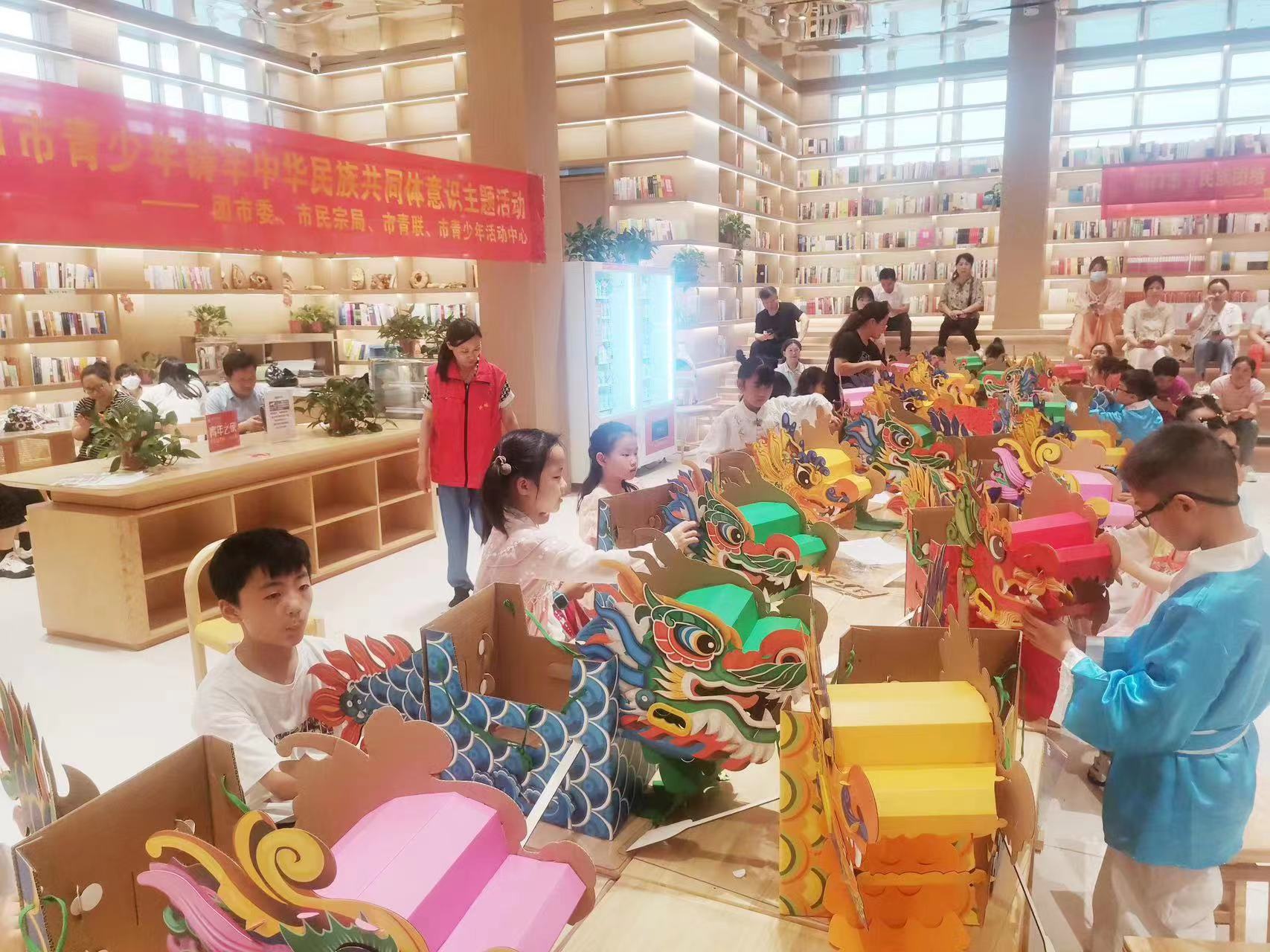 活动中,各族学生身着汉服,齐声诵读了《少年中国说》。在制作龙舟环节,学生们亲自动手、互相协作,制作龙舟。拼装完龙舟后,学生们进行了一场激动人心的旱地龙舟接力赛,家长们为学生擂鼓助威,现场气氛热烈。通过诵读经典和龙舟比赛,共同感悟伟大的中华民族精神和端午传统文化魅力。